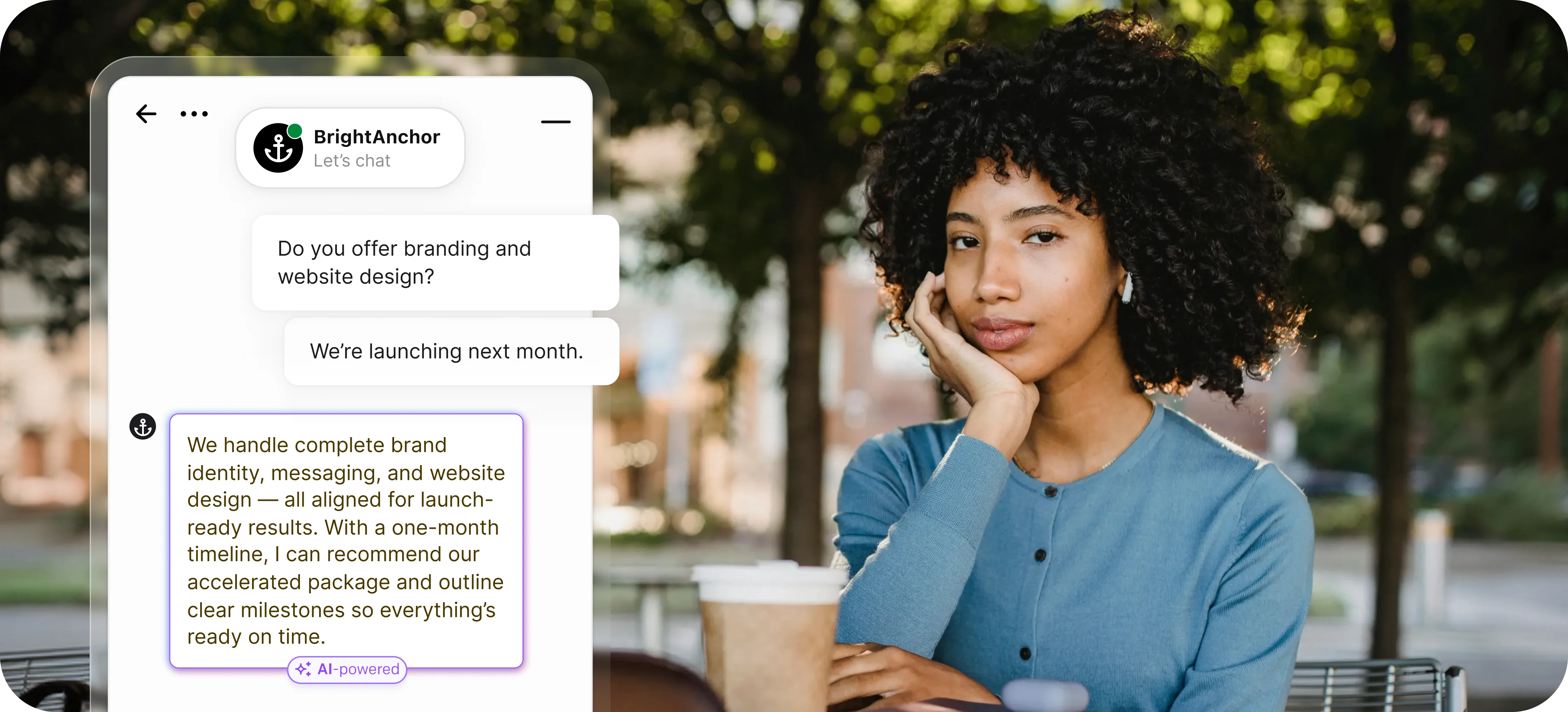 During high-demand periods, live chat becomes essential for managing increased website visitors efficiently. AI agent capabilities handle repetitive tasks and routine inquiries while your team focuses on complex client conversations. Knowledge base integration provides instant access to common answers, and conversation summaries help you catch up quickly without reading full transcripts - keeping customer engagement high.