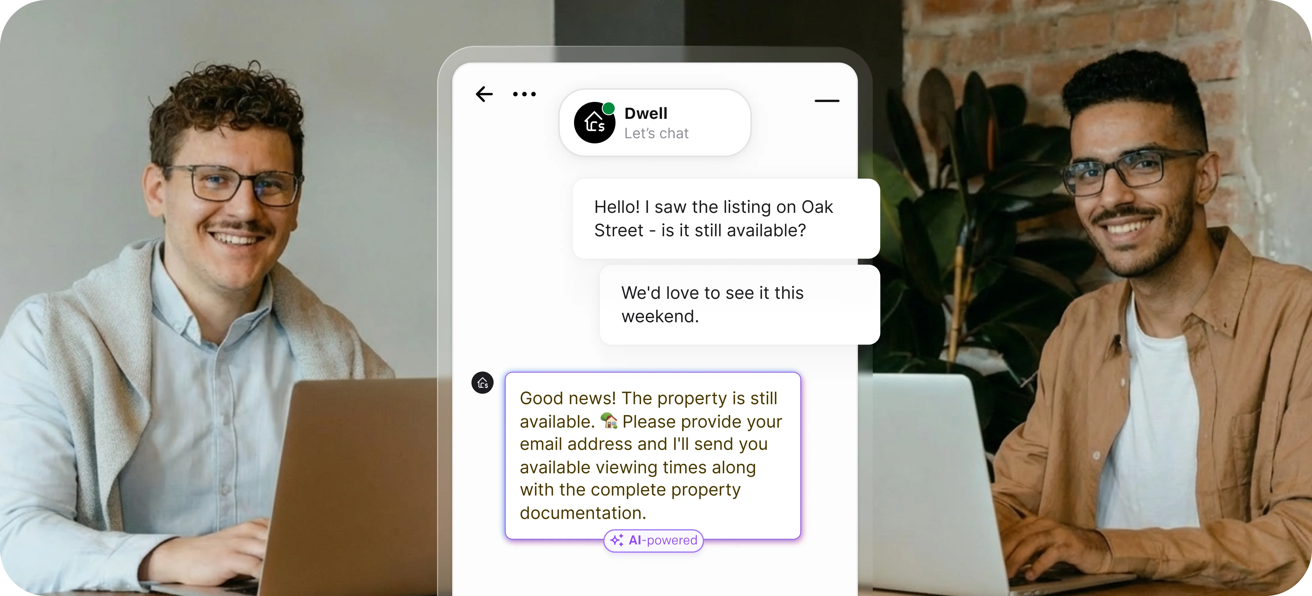 Allow real time conversations to start at any time, and reply when convenient. Your real estate business can offer 24/7 availability without adding to daily tasks - perfect for potential buyers with urgent questions who prefer making contact outside traditional phone calls.